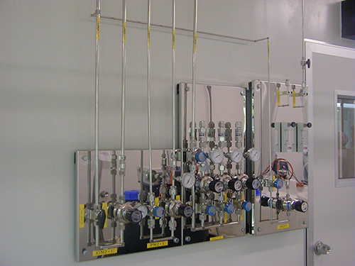 產(chan)品(pin)說明:實(shi)驗室氣(qi)體(ti)由實(shi)驗室外(wai)氣(qi)瓶區域用管路(lu)(lu)引進,除了(le)儀器空(kong)氣(qi)(工(gong)廠空(kong)氣(qi))是(shi)工(gong)廠直接生產(chan)外(wai),其余氣(qi)體(ti)應采用高壓氣(qi)瓶供氣(qi),安裝半自(zi)動轉(zhuan)換(huan)閥(fa)控(kong)制(zhi)氣(qi)瓶更換(huan),主(zhu)要的(de)(de)控(kong)制(zhi)閥(fa)門和減壓閥(fa)門都安裝在(zai)實(shi)驗室外(wai),實(shi)驗室氣(qi)體(ti)管路(lu)(lu)主(zhu)要材質為不銹鋼,安裝在(zai)天花板下方,沿著(zhu)墻走,這(zhe)樣便于檢查和維修。此外(wai),中(zhong)央臺氣(qi)體(ti)管路(lu)(lu)的(de)(de)引入通過服(fu)務柱所有的(de)(de)氣(qi)體(ti)管路(lu)(lu)在(zai)工(gong)作臺上具有合適的(de)(de)控(kong)制(zhi)閥(fa)門以便于操作,所有氣(qi)體(ti)管路(lu)(lu)的(de)(de)連接均采用無(wu)縫焊接。